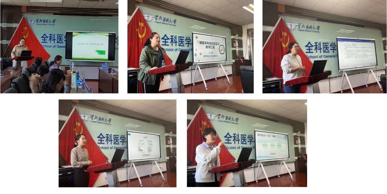 随后,各个社区基地对《全科医学概论》第二次社区见习--全科医疗中的接诊,进行了授课经验交流分享。