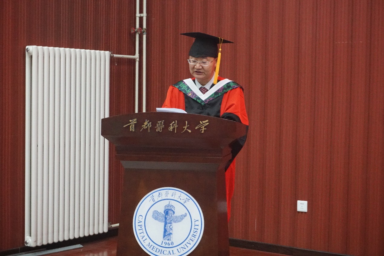 在典礼上致辞,希望同学们肩负起健康中国与乡村振兴的时代使命,成为守护郊区群众健康的“守门人”。期待同学们在未来岗位上成为“传统医术与数字技术融合”的先行者,为提升郊区医疗现代化水平注入创新动能,扎根京郊沃土,用青春与专业守护一方健康,为首都发展筑牢健康根基!