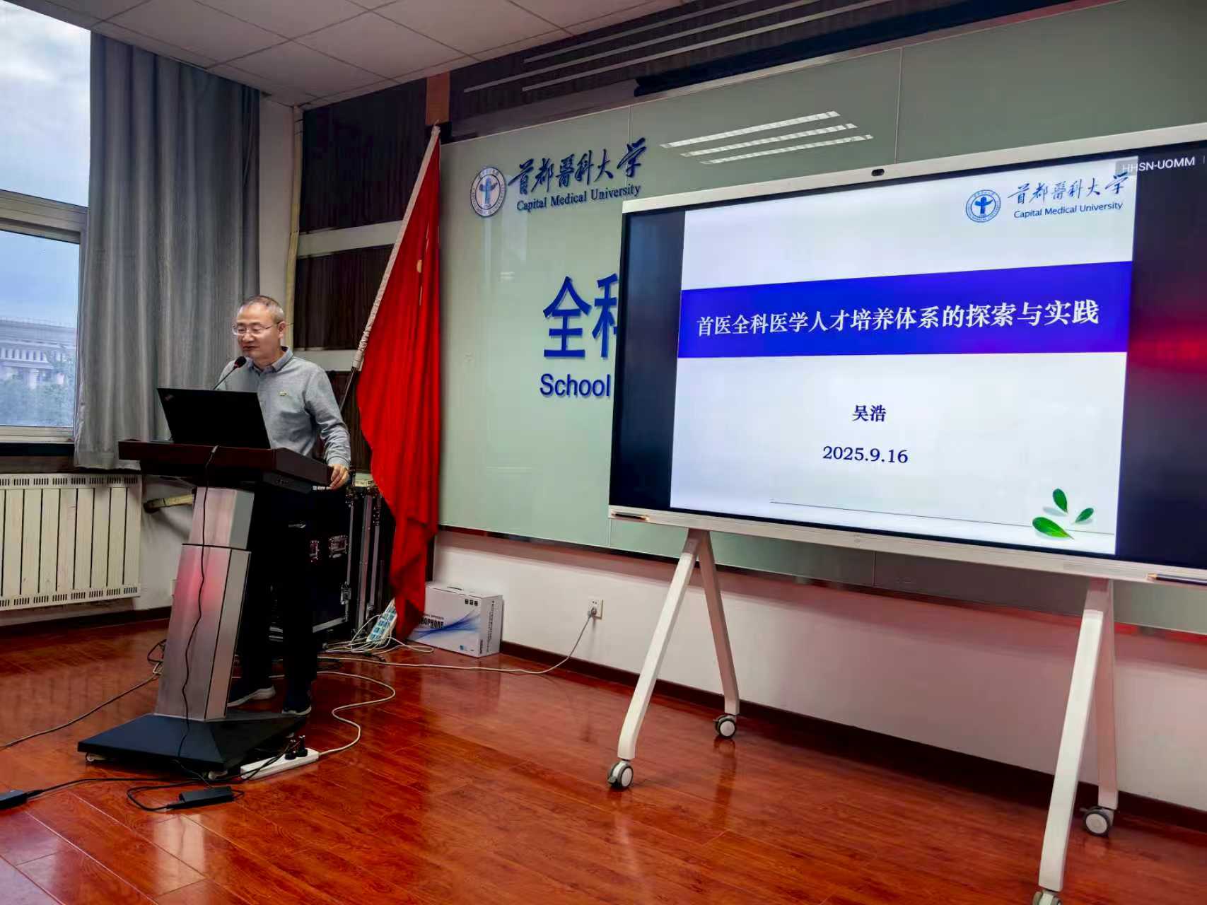领导,并对新生的到来表示热烈欢迎。随后,吴浩院长为新生讲授“院长第一课”,围绕全科医学的发展前景、学科特色以及研究生阶段的学习重点等方面展开,鼓励同学们树立远大理想,夯实专业基础,重视科研训练。